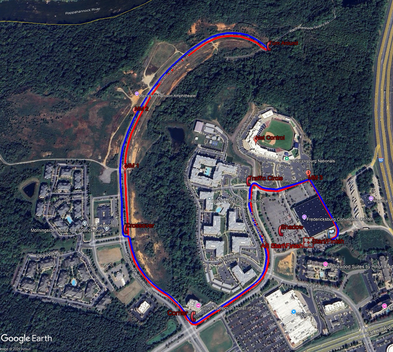 Below is a Google Earth KMZ file of the whole course. This file can be used with Google Earth on you computer or phone. It is a good reference on race day. By default I have turned of the layer for Course Marshals. You can turn this layer back on if you desire. Also, included in this map is the arps.fi track of the pace vehicle (KN4RPA) and sweep vehicle (N1BED). Right click and "Save Link As" to download.